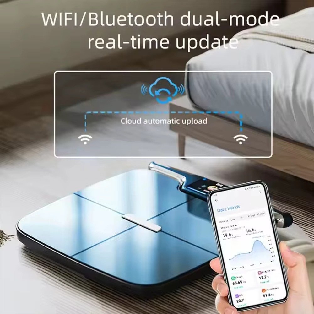A WiFi Body Fat Scale is a modern digital scale that measures multiple health parameters such as body fat percentage, muscle mass, bone density, water weight, and BMI. Unlike traditional weighing scales, it connects to your smartphone through WiFi, allowing you to sync data automatically with fitness apps. The 8-electrode technology ensures higher accuracy by providing a full-body composition analysis.